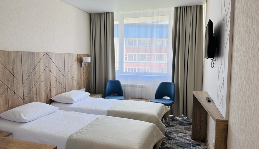 Номер с двумя односпальными кроватями. После капитального ремонта. Современный, стильный, лаконичный дизайн создает спокойную атмосферу и приятные воспоминания об отдыхе. Подходит для комфортного размещения одного или двух человек (две односпальные кровати/сдвижные).